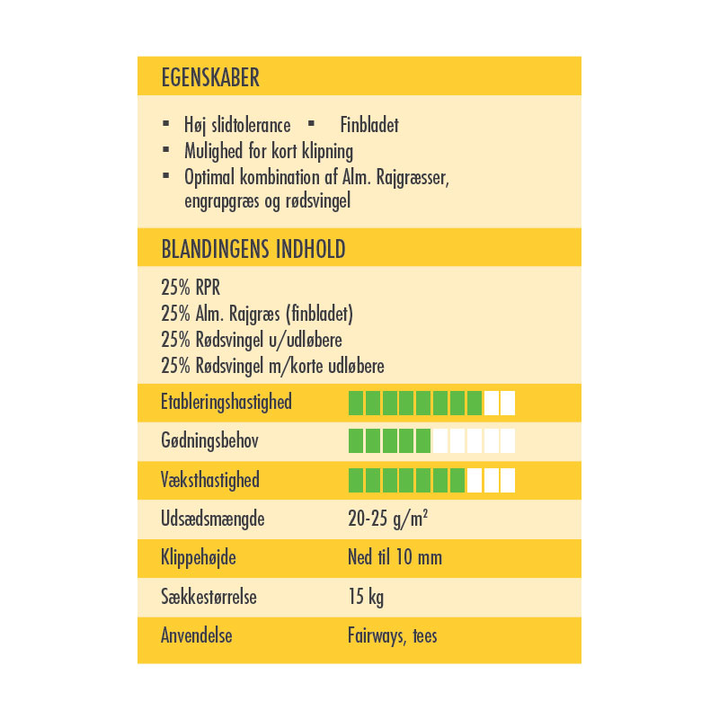 korte udløbere. Det er en særdeles robust blanding, som takket være rødsvingel bevarer en høj