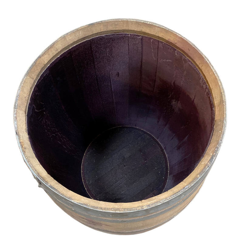 Indvendigt er tønden mørkerød, efter vinen som stadig sidder dybt inde i træet.