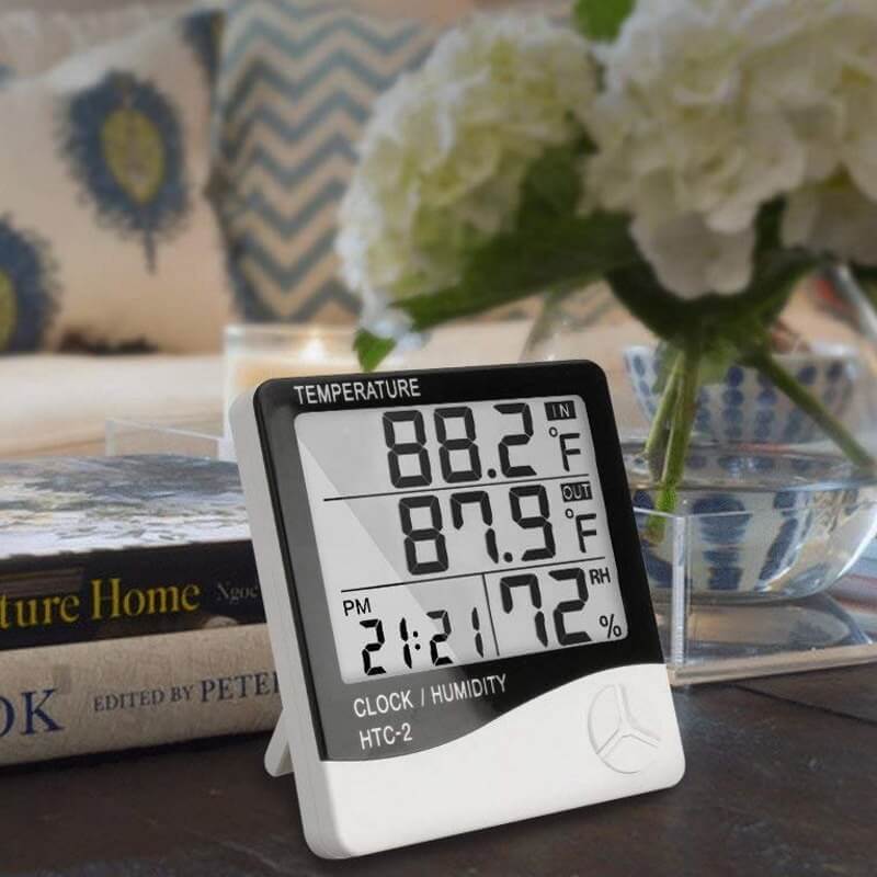 Med hensyn til luftfugtighed kan den måle fra 10% RH til 99% RH. (RH= Relativ humidity). Den ideelle luftfugtighed bør i et hus bør ligge på mellem 40 og 60 procent