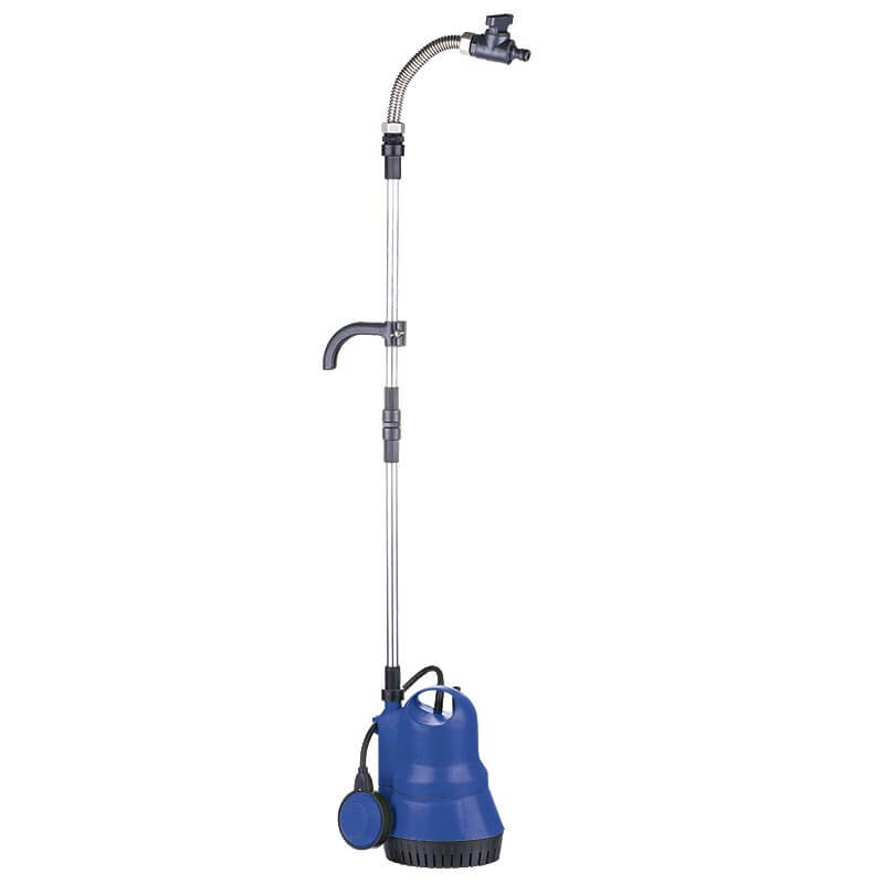 Denne dykpumpe passer ned i de fleste regnvandstønder. Den passer også ned i vores regnvandstønder i træ, som den ofte bliver købt sammen med. Dykpumpen er udstyret med en automatisk flydeafbryder, som slukker for pumpen, når regnvandstønden er ved at være tom.