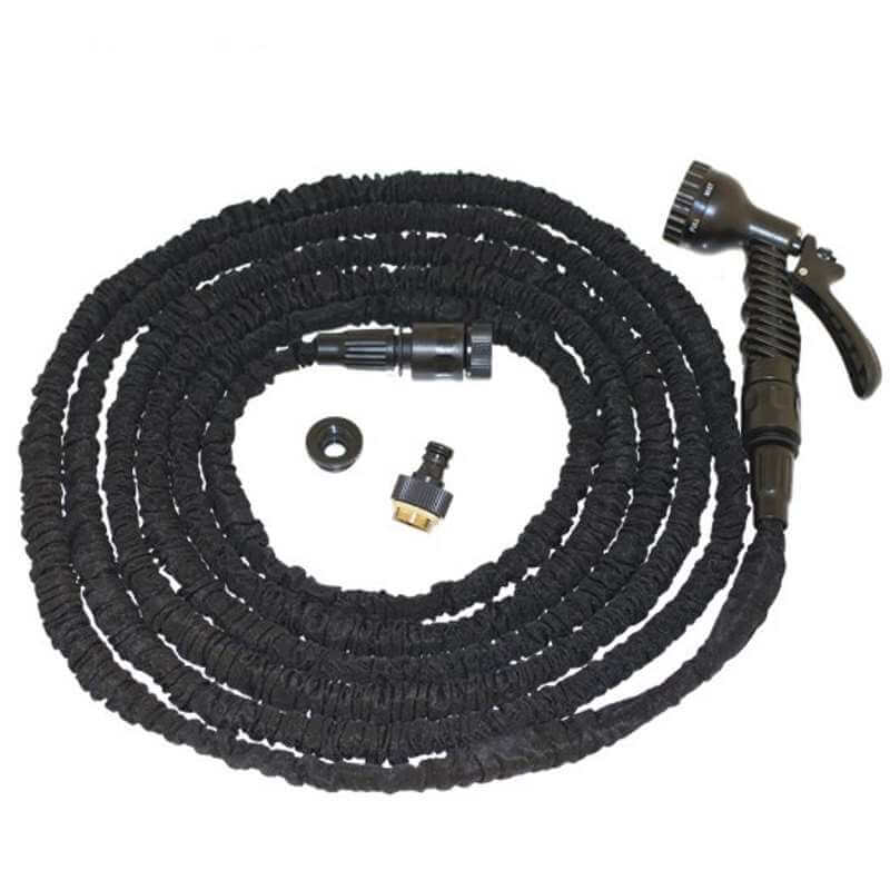 Den 15 meter lange flex vandslange er utrolig fleksibel og den udvider sig helt automatisk fra 5 meter til 15 meter, når der kommer vand i slangen.