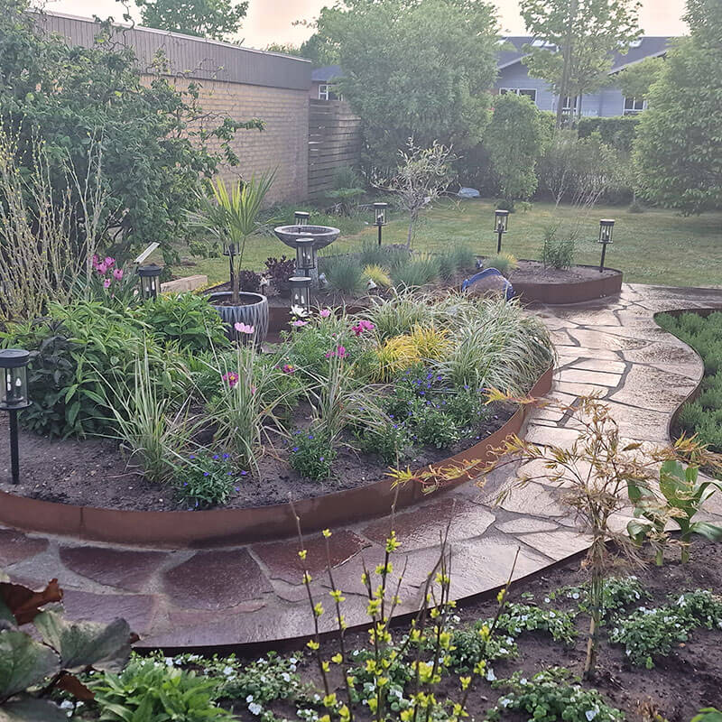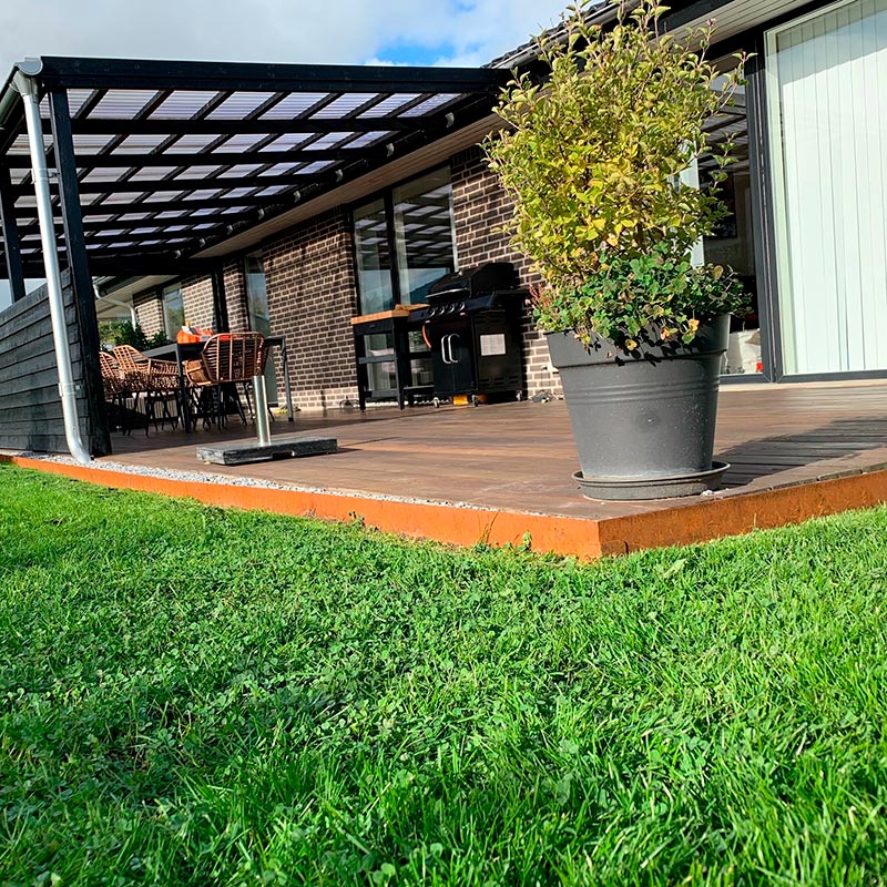 Græskanterne er fremstillet i cortenstål. Cortenstål kan ikke gennemtære, og er derved et vedligeholdelsesfrit og langtidsholdbart materiale at bruge som græskant.
