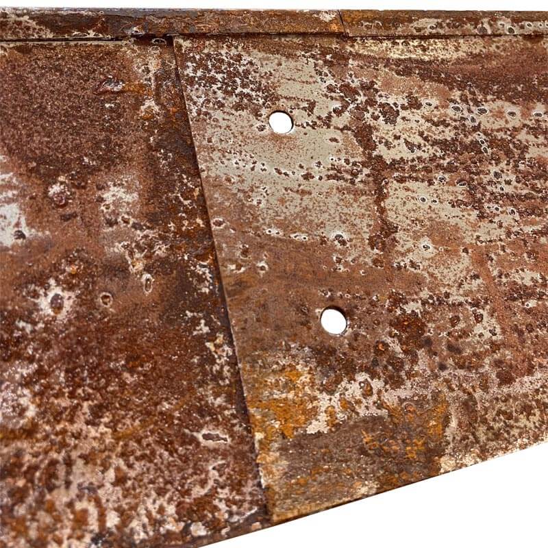 Bemærk: ved modtagelse er stålet ikke rustent. Ønsker du hurtig rust, kan du tørre stålet af med en klud væddet op i vand og sulfo.