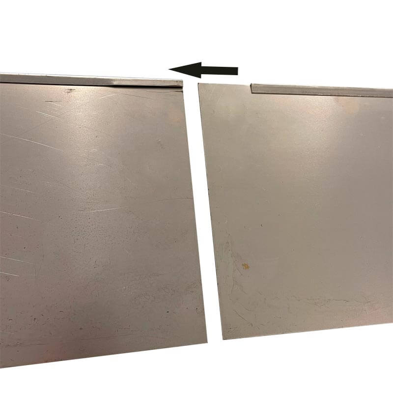 Den øverste kant er bukket, så man ikke skærer sig på den. Kanterne samles nemt så de fortsætter som en lang kant. Se billede 2.