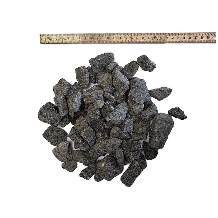 Vigtig viden om granitskærver: Granitskærverne kan være støvede når du modtager dem, men efter en måneds tid med lidt regn, har de den rigtige farve. Støvet stammer fra knusningen i stenbruddet. Størrelserne på skærverne kan godt være dobbelt så lange, som de angivne størrelser. Den angivne størrelse er altid skærvens bredde, som er efter den standard, som bruges i hele branchen og ved alle forhandlere.