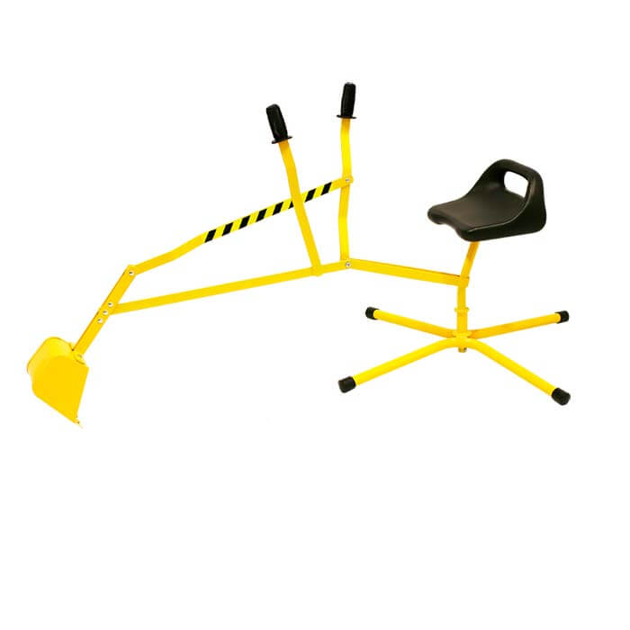 Gravemaskinen er lavet i metal og sædet er lavet i hård plast. Sædet kan klare belastninger på maksimalt 50 kg.