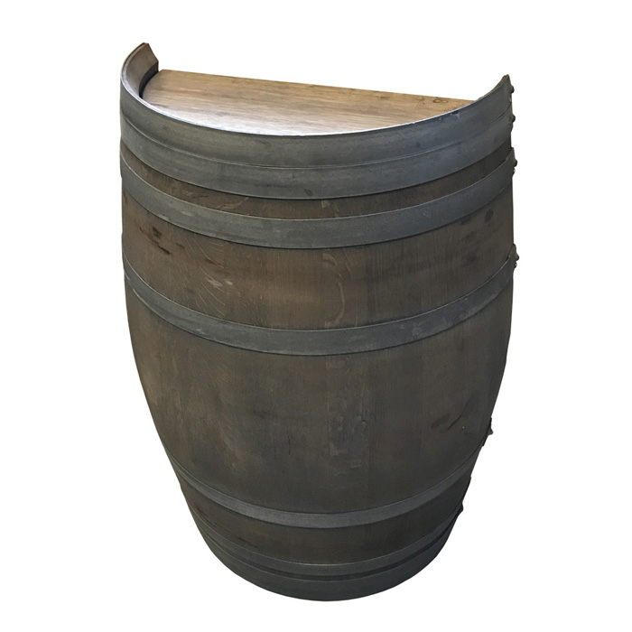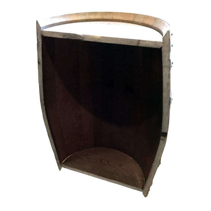 Dette er vores brugte vintønde, som er bejdset og som vi har flækket på langs. Det smarte ved en vintønde, som er flækket på dette led er, at den kan bruges i rum hvor det kniber med pladsen. Den bliver ofte brugt i vinkældre hvor pladsen er trang.