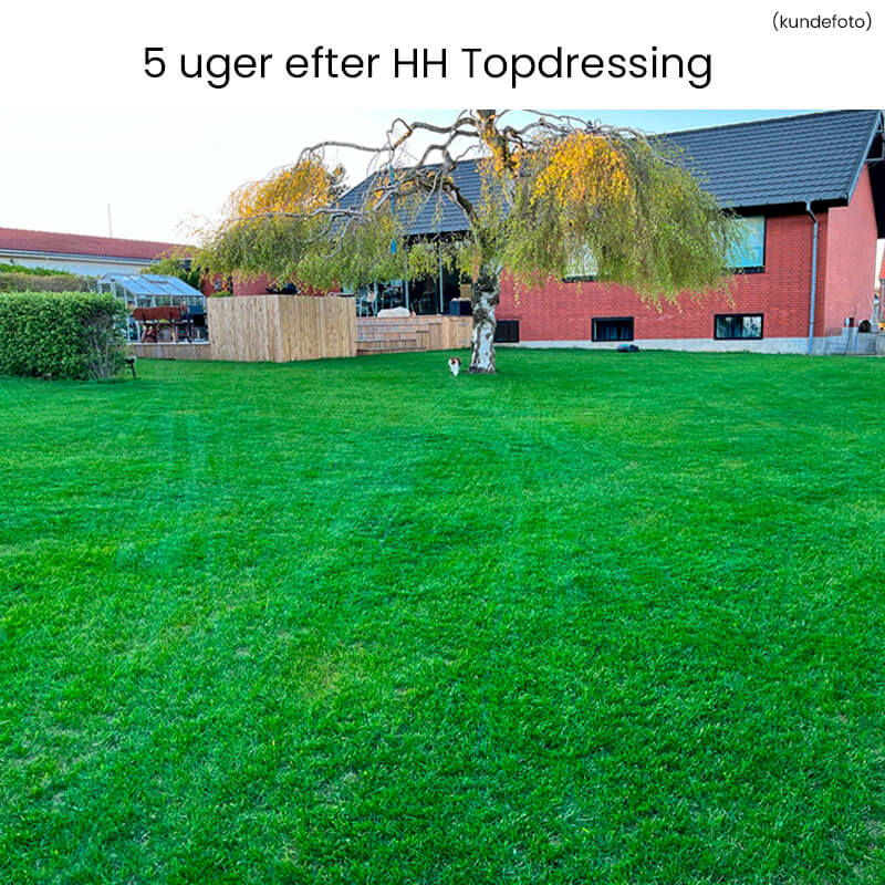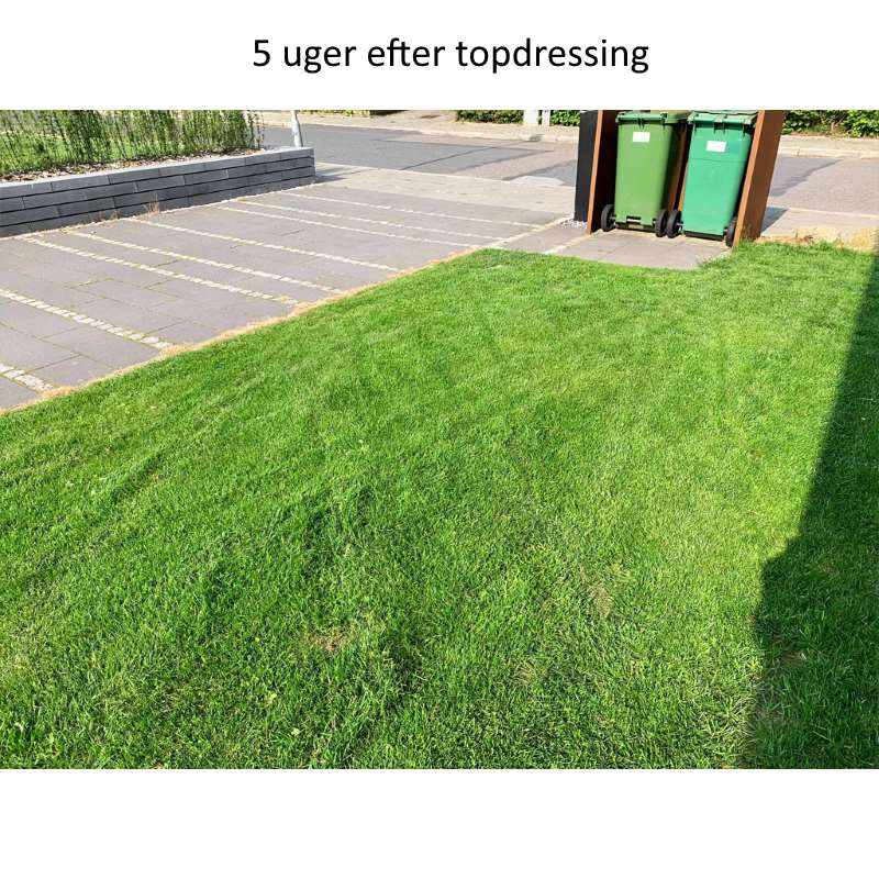 Vi købte topdressingen herfra i september og er meget tilfredse. Det er en lille måned siden at vi udlagde topdressing og det er så tydeligt at se virkningen! Vi løb tør for topdressing og der var et område på 20-30 kvm som ikke fik noget. Området som ikke fik er grøn/gullig og området som fik er flot mørkegrøn og helt tæt. Det kan varmt anbefales