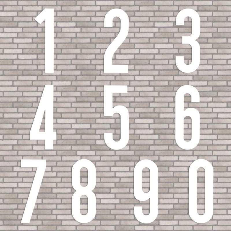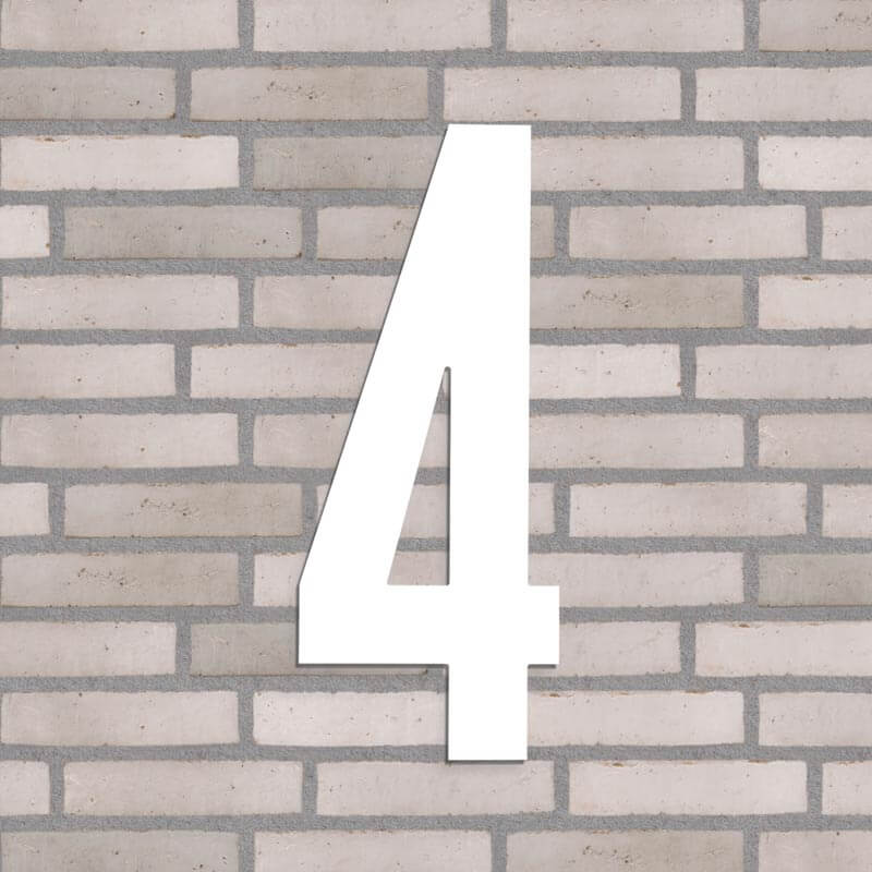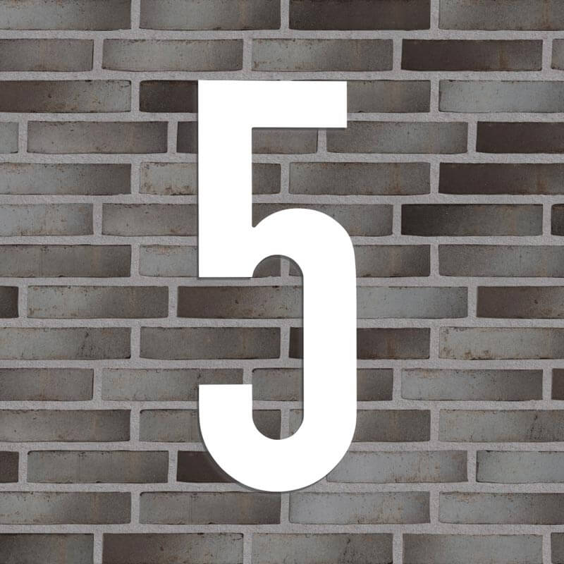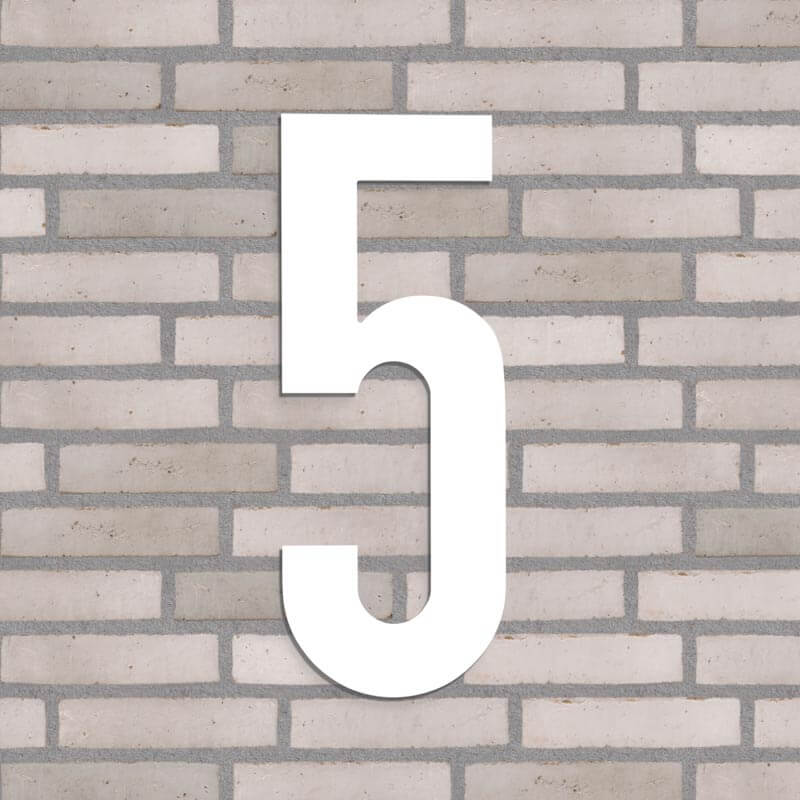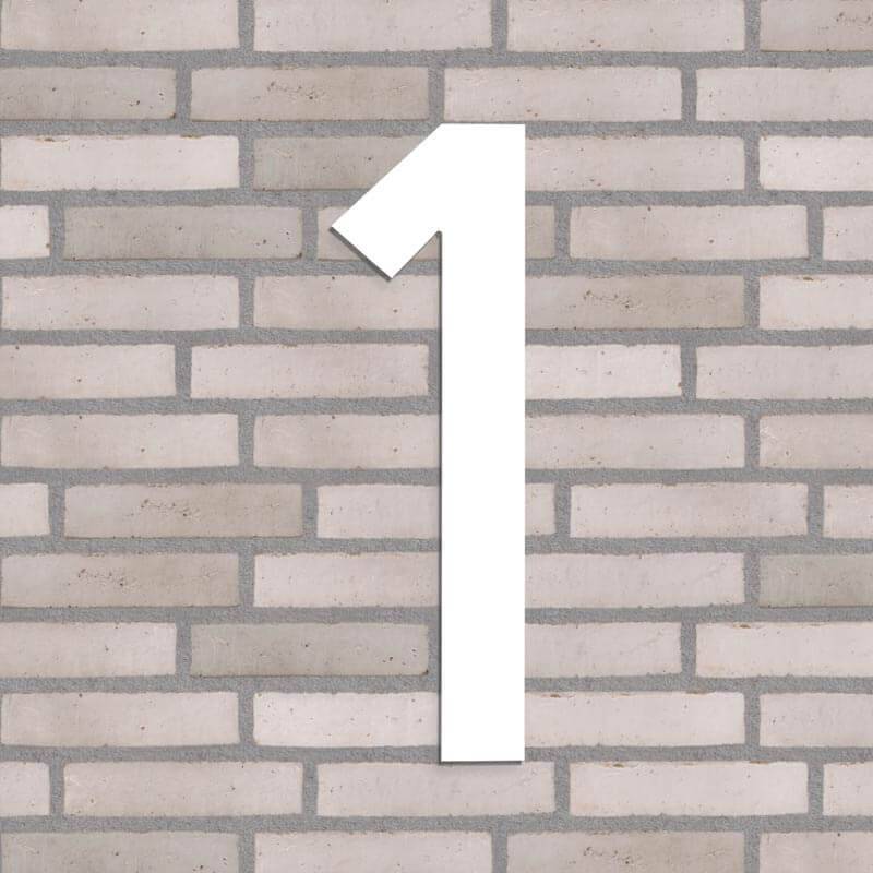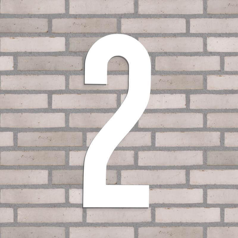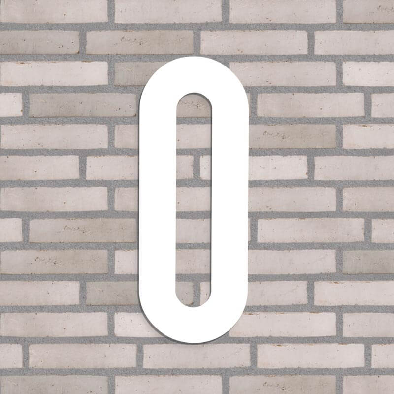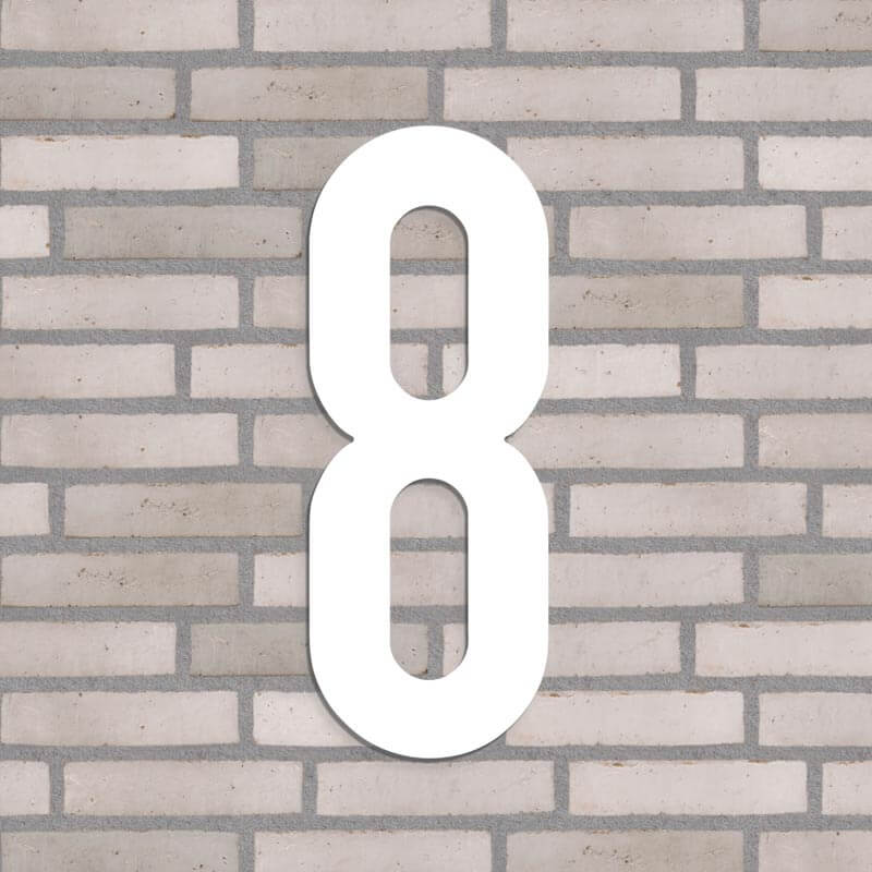 Flot husnummer i farven hvid. Lavet i PVC beklædt med vedligeholdelsesfrit aluminium, som hverken ruster eller får misfarvninger, trods regn, vind og vejr.