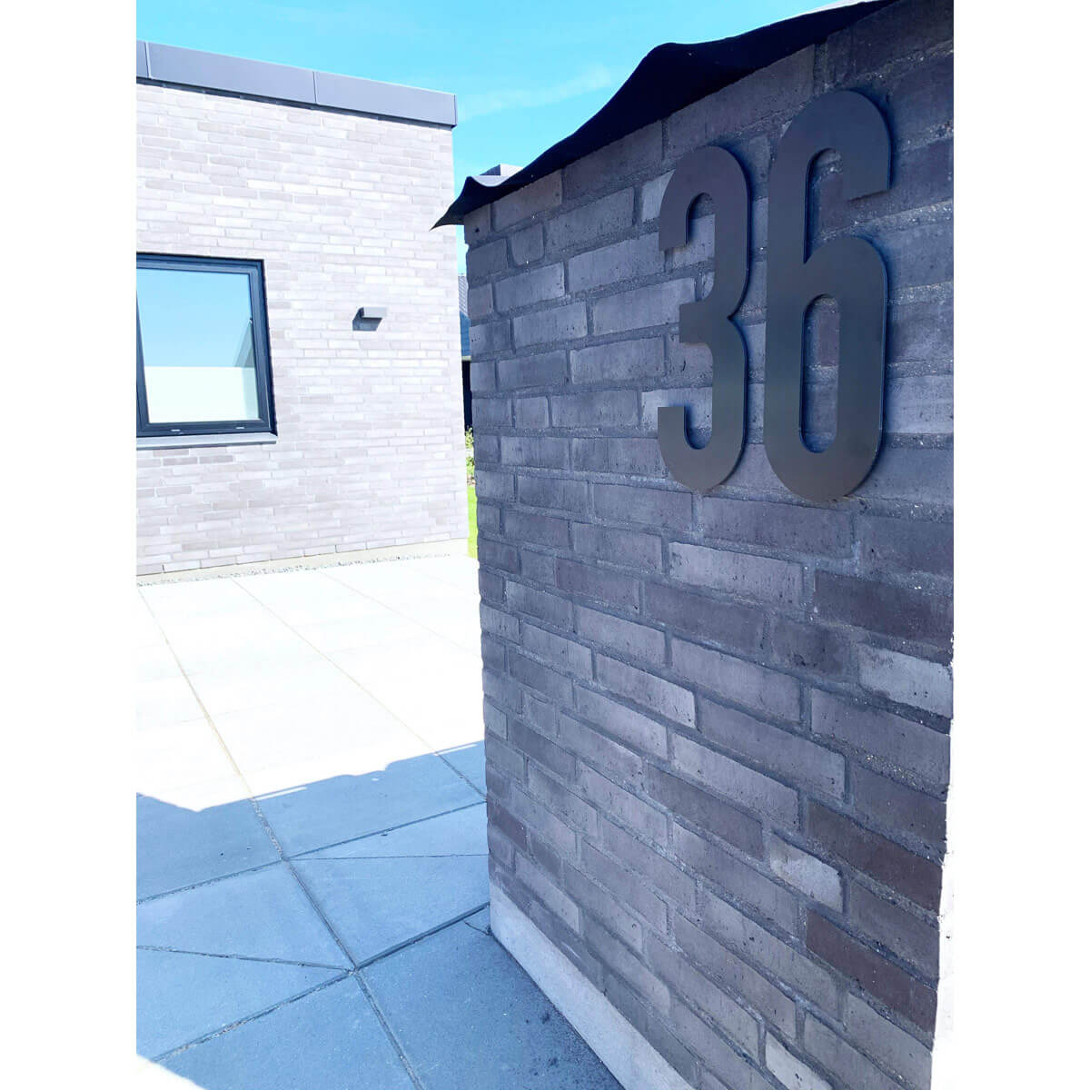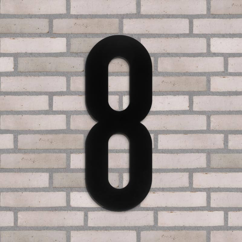 Flot husnummer i farven sort. Lavet i PVC beklædt med vedligeholdelsesfrit aluminium, som hverken ruster eller får misfarvninger, trods regn, vind og vejr.
