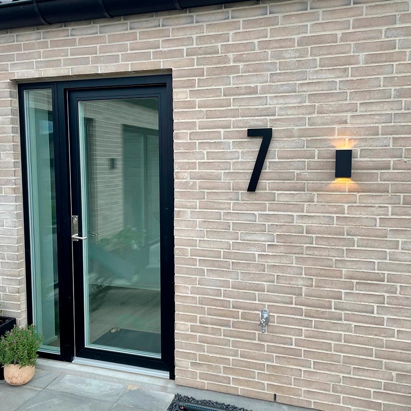 Vores sorte husnummer skiller sig ud fra mængden med sit flotte og tidsløse design, som garanterer at ens besøgende kan finde den rigtige adresse uden problemer. Et husnummer betyder meget i forhold til ens gæsters førstehåndsindtryk af boligen, derfor bør man ikke gå på kompromis med præsentationen af sit husnummer.