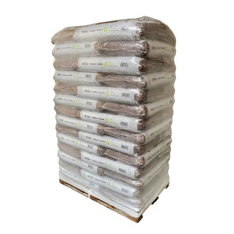 Kakaoskallerne kan bruges overalt i haven som dækmateriale og samtidigt undgår man brugen af kemikalier. Produktet er rig på naturlige næringstoffer, der øger indholdet af humus i jorden, bekæmper ukrudt, holder på jordens varme og øger beskyttelsen mod frost.