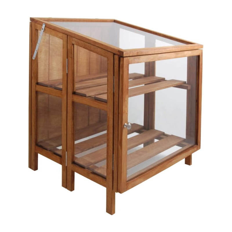 Flot og praktisk minidrivhus udført i hårdt træ, rustfrit stål og glas. Ideelt til at skabe det bedste forhold for dine friske krydderurter.