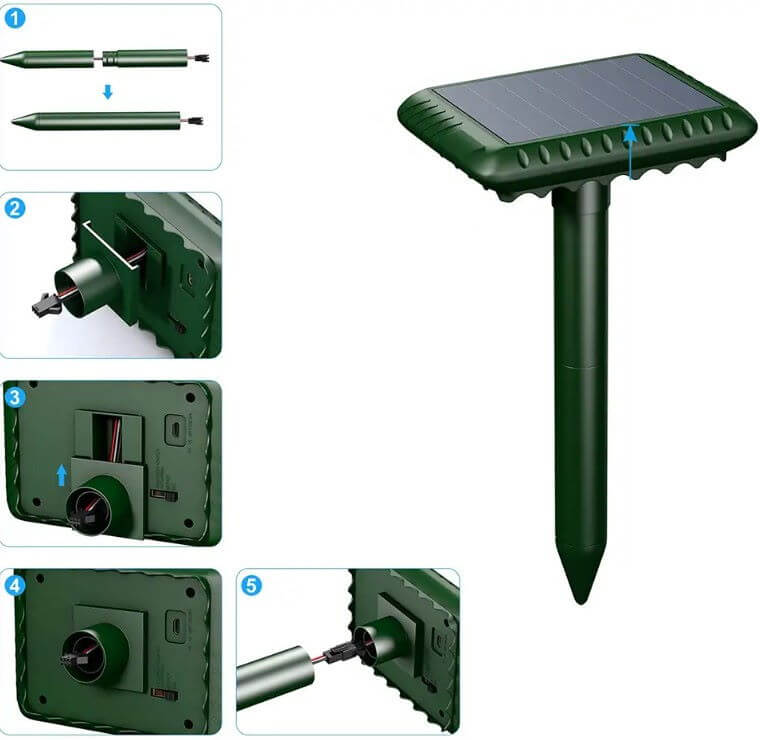 Ved at udsende lyd- og mekaniske bølger, som irriterer og skræmmer gnavere, driver muldvarpeskræmmeren effektivt muldvarpe, mosegrise, mus og lignende væk fra din grund.