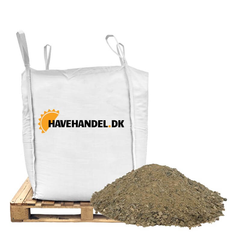Blandingen består af stenmel, små knuste bakkesten og lergrus.
