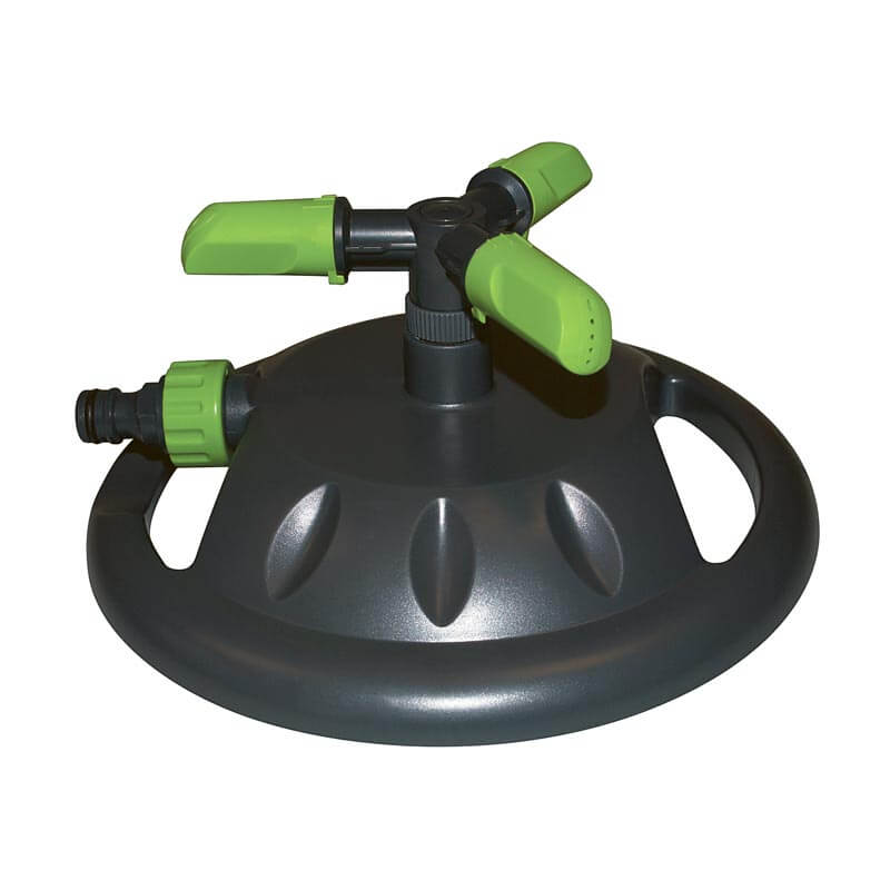 Denne roterende vandspreder står stabilt og kobles nemt til din vandslange med en almindelig vandkobling.