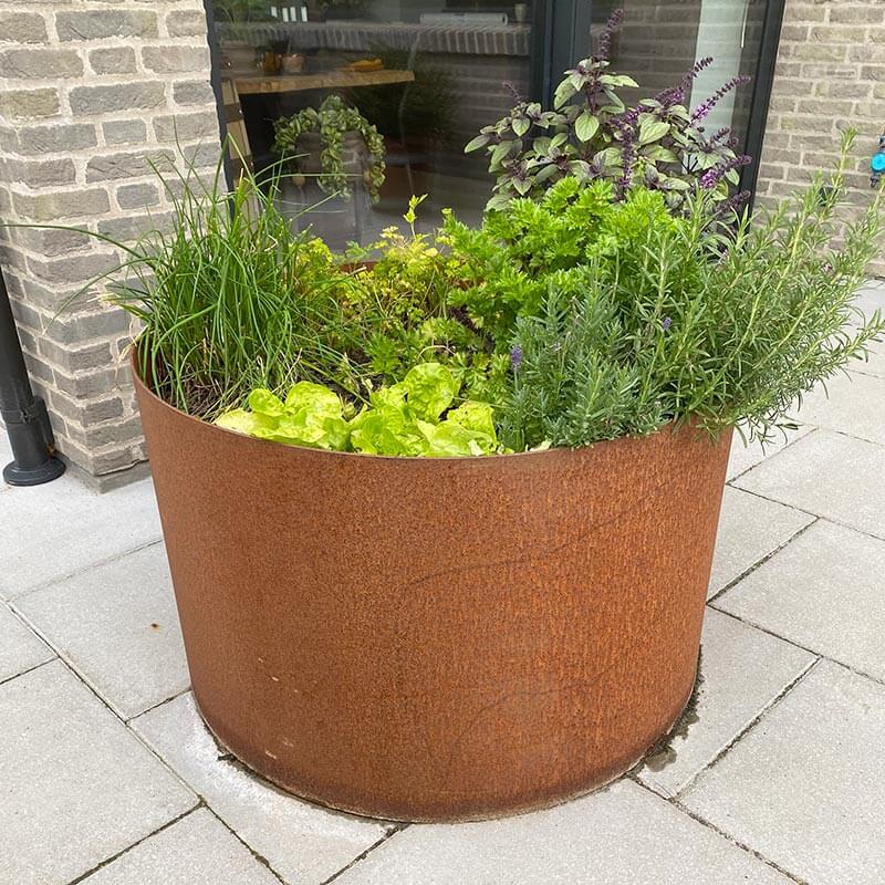 Rundt cortenstål højbed på specialmål