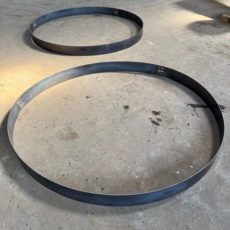 De er fuldsvejsede i diameter op til 80 cm. Ved størrelser herover laver vi skjulte samlere på indersiden. Det gør dem lette at håndtere og lette at placere hvor de skal bruges.