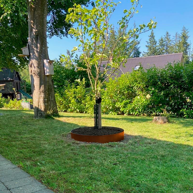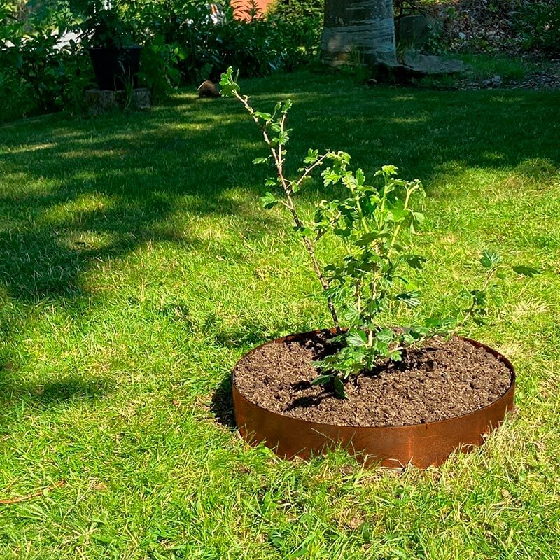 Et rundt bed som dette er perfekt til afgrænsning af træer eller et lille bed. Højbedet er lavet i kraftigt cortenstål, som får et rustent udseende.