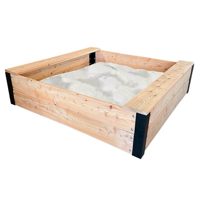Her får du en rigtig fin sandkasse, som er lavet i et den langtidsholdbare træsort lærketræ. Modellen er med 2 siddebrædder og i en højde, så man kan sidde behageligt mens der laves sandslotte og sandkager.