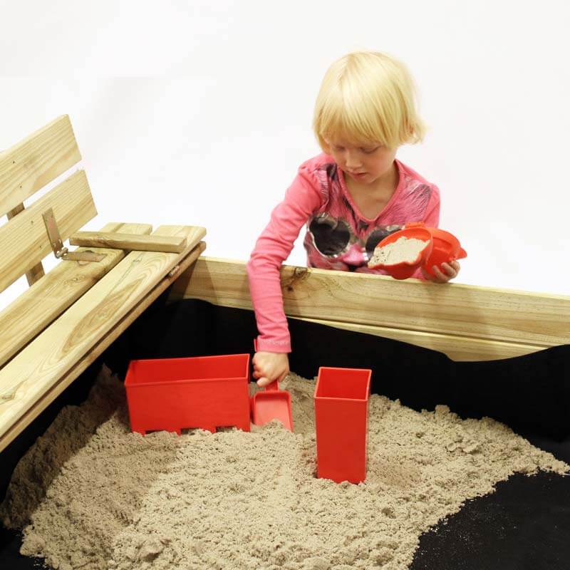 • Sandkassen er nu helt klar til at blive fyldt med sand.