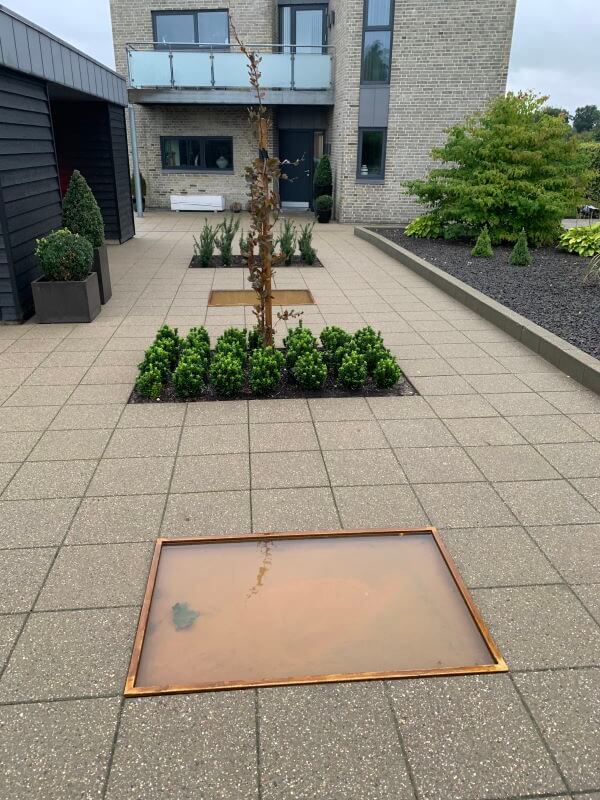Her får du et unikt spejlbassin, som er udført i det populære materiale Cortenstål. Udover at være utrolig robust, så har cortenstål en meget lang levetid på +20 år. Vandspejlet kan både stå frit, samt graves ned, så det bliver helt plant med en belægning eller planterne i et bed.