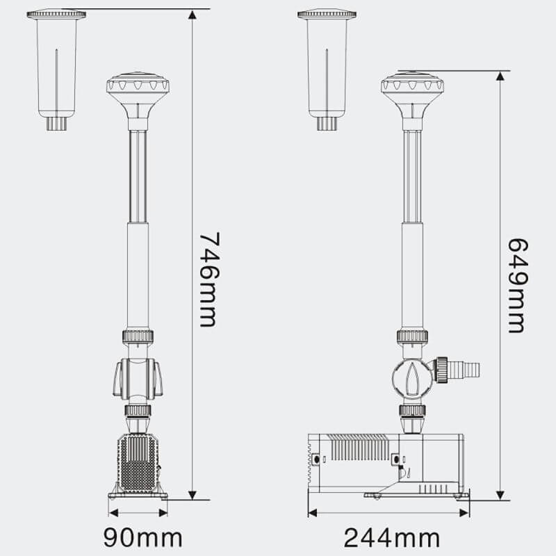 Springvandsdelen er justerbar i højden og kan justeres fra 38 cm. til 67 cm. i højden.