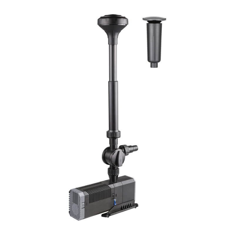 Med til pumpen får du 2 forskellige hoveder til springvandet, så du får et stort udvalg af springvandsmønstre.