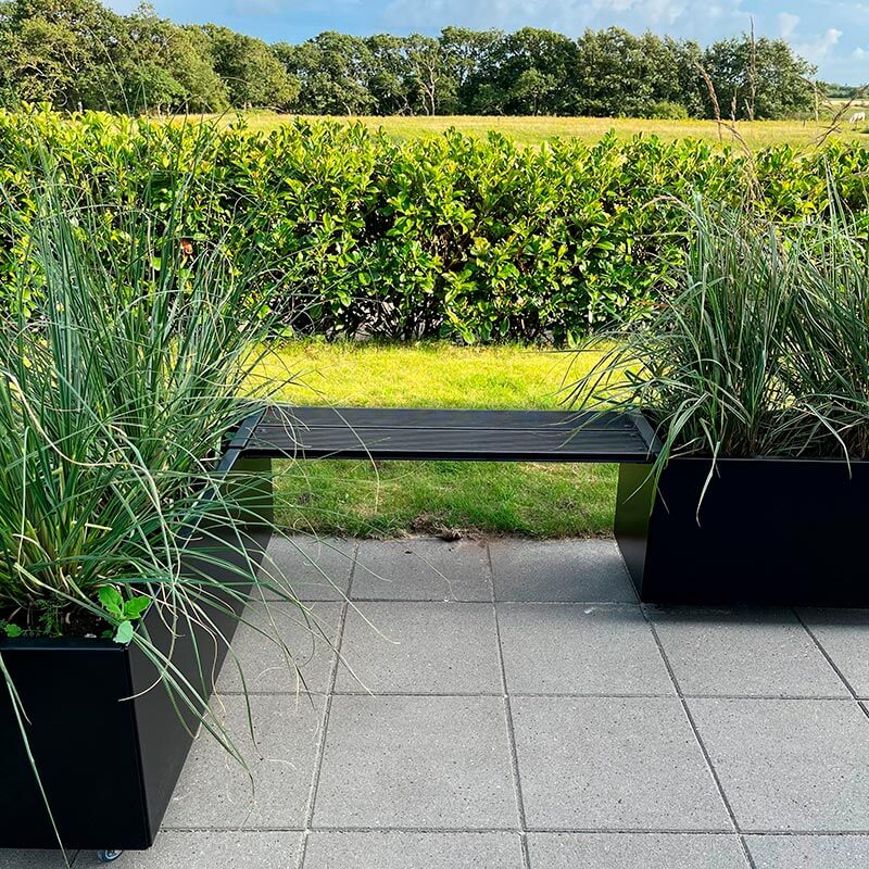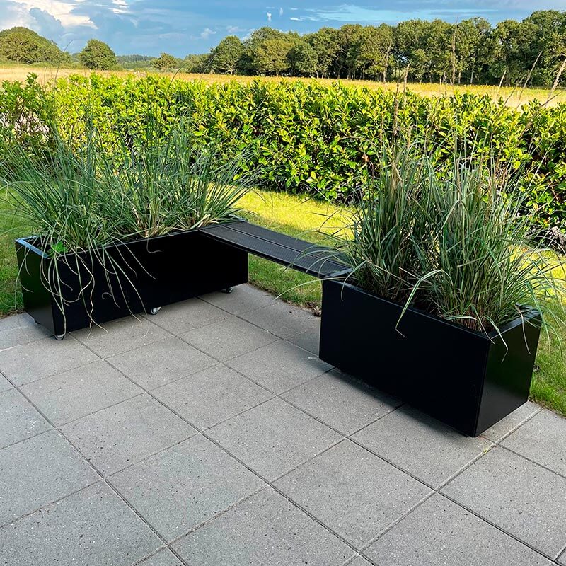 Stilfuld bænk i vedligeholdelsesfrit komposit, som passer til brug mellem vores højbede fra THOR-serien.