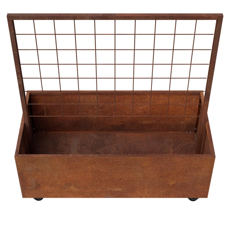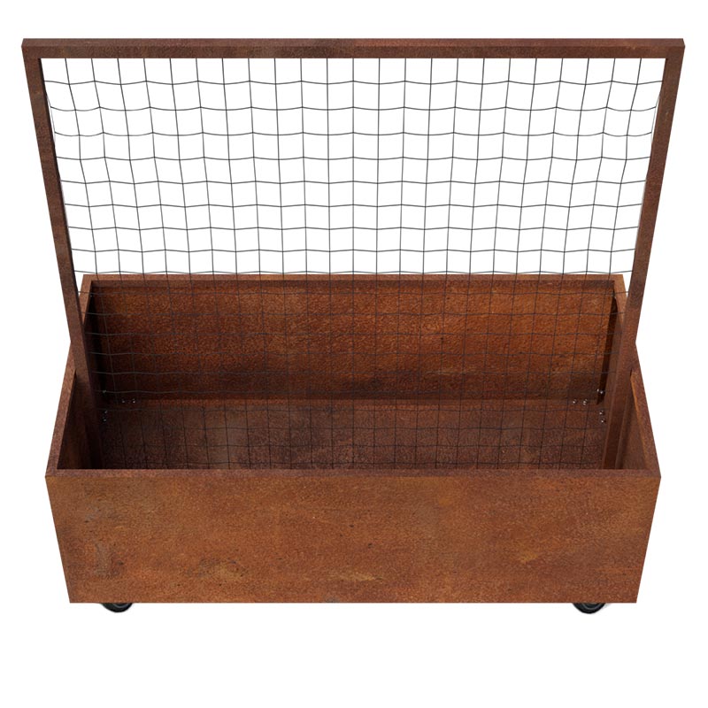 Her får du en plantekasse på hjul med espalier i en uovertruffen kvalitet, som er ideel til fx flytbar afskærmning på terrassen eller altanen.