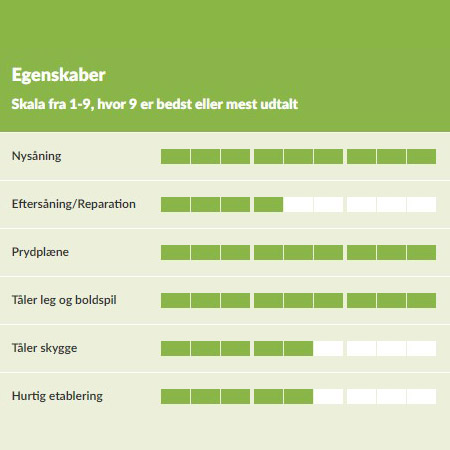| Giver en grøn, tæt og slidstærk græsplæne | |