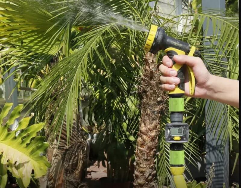 Her får du en smart vandmåler, som du kan koble til din vandslange, så du kan holde styr på dit vandforbrug i haven.
