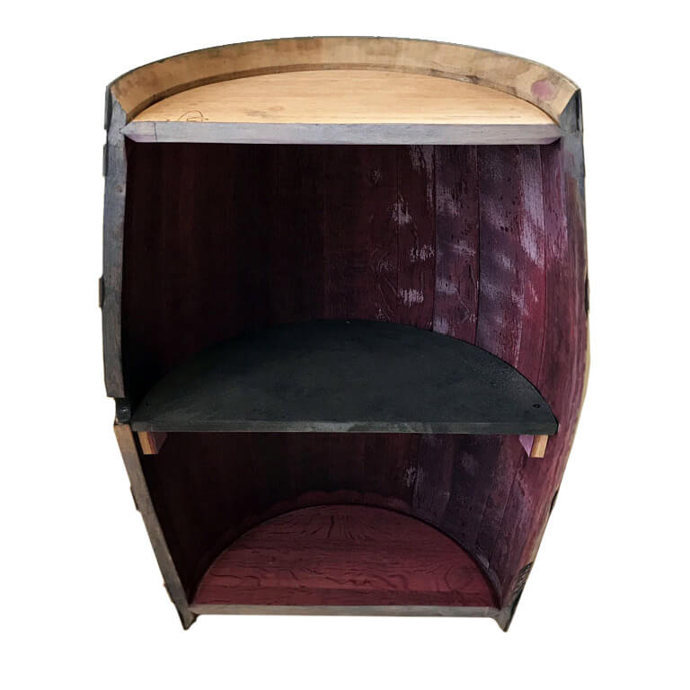 Her har vi forvandlet en brugt vintønde om til en vinreol, så du kan opbevare dine vinflasker med stil. Indersiden på vinreolen har stadig den flotte bordeaux røde farve, fra at have været fyldt med rødvin. Går man helt tæt på, kan man stadig dufte rødvinen, som stadig sidder dybt inde i tøndens egetræ. Her får du en unikt og rustik vinreol, som passer ind alle steder i huset. Placer vinreolen i vinkælderen, stuen eller køkkenet og imponer dine middagsgæster med din nye vinreol.
