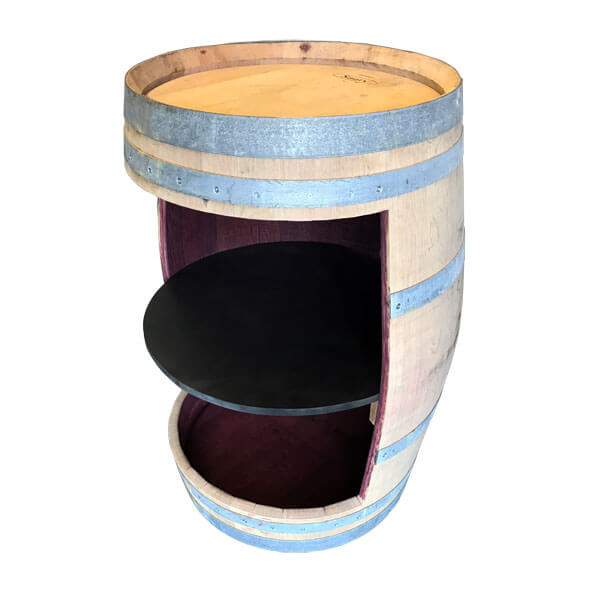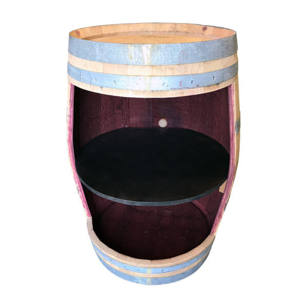 Vi har her taget en brugt vintønde, 225 liter og lavet den om til en fantastisk vinreol. Selvom vi kalder det en vinreol, kan den selvfølgelig bruges til at opbevare alverdens andre ting. Still dine kogebøger, glas eller andre alkoholer i vinreolen, det er helt op til dig.